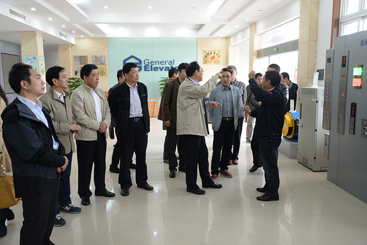 與會人員參觀了通用電梯的安全監控設備,然后沿著安全通道對生產車間、倉庫進行調研考察,并在