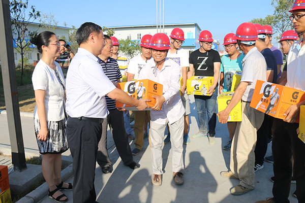 各位領(lǐng)導(dǎo)還慰問了高溫中戰(zhàn)斗在一線的工人,關(guān)囑他們注意安全,注意身體。