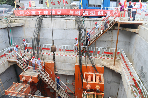 會前,與會人員參觀了由揚建集團承建的市政府重點民生項目荷花池水下停車場頂涵工程。陳榮春對奮戰在高溫一線的現場工人進行了慰問,送上了清涼的礦泉水、解暑飲料,關囑他們做好防暑降溫,保護身體健康,并希望項目部人員認真抓好施工,總結積累“新工藝”經驗,提升企業施工水平和能力。