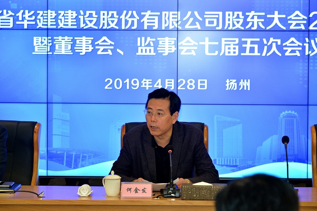 4月28日,江蘇華建股東大會2019年會暨董事會、監事會七屆五次會議在揚州華城科技廣場召開。會議由董事長王宏主持,揚州市副市長何金發到會并致辭。