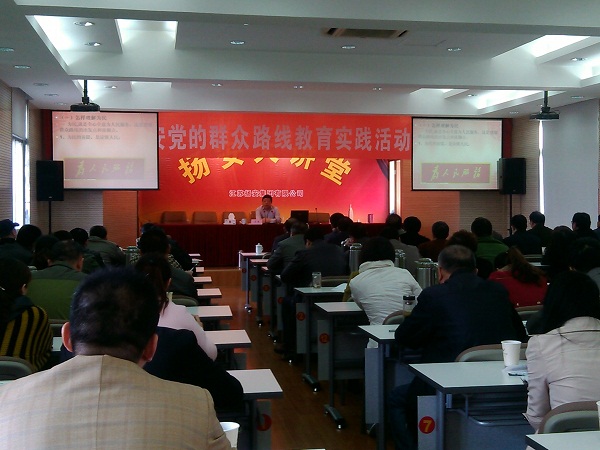 揚安集團舉辦黨的群眾路線教育實踐活動專題講座 時間:2014-04-033269 4月3日上午,揚安集團舉辦黨的群眾路線教育實踐活動專題講座,黨委書記李幼杰主持,揚州市委黨校王淦教授主講“堅持群眾路線,為民務實清廉”。講座主會場設在集團總部,黨委領導班子全體成員、總部部室管理人員、在揚分(子)公司黨員、入黨積極分子代表70余人參加;駐外分公司黨支部采用電話連線形式,組織黨員在各分會場聆聽。