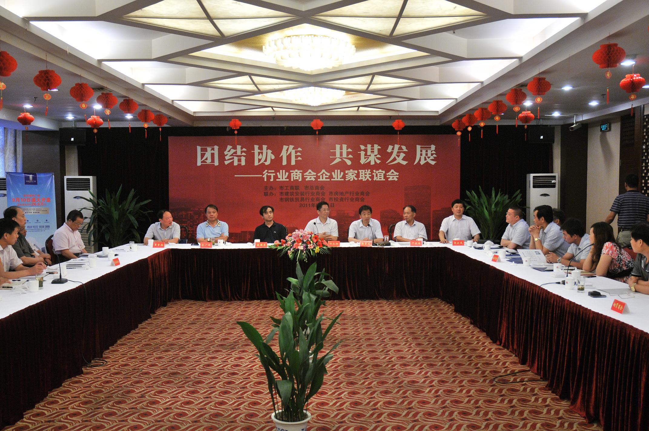 8月31日下午,由市工商聯、市總商會主辦,市建筑安裝行業商會、市房地產行業商會、市鋼鐵貿易行業商會、市投資行業商會聯辦的“團結協作、共謀發展——行業商會企業家聯誼會”在怡園飯店隆重舉行,市人大副主任、市工商聯主席、市總商會會長孫永如,市委統戰部副部長、市工商聯黨組書記、副主席、總商會副會長趙振東出席會議,四個商會的會長、副會長、秘書長以及企業家代表近50人參加聯誼,揚州日報、揚州晚報、揚州電視臺等新聞媒體進行了報道。